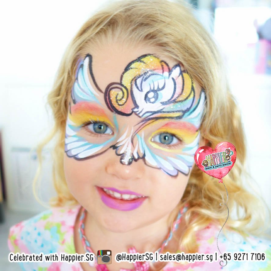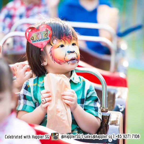 At this age, fun to a toddler is made up of novel sensations, happy sounds and bright colours. This means playful children’s face painting designs will work best. They are quick to paint will ensure the experience is most enjoyable to him / her. It also helps for mums and dads to have their toddler sit in their laps if they are aged 2 and below. When you echo our children’s party face painters with your “Ooooh!”, “Wheeeee!”, “You look amazing!”, we guarantee your toddler is going to love getting painted even more. It doesn’t matter if he or she sweats off the face painting in no time, what matters is funny feeling of being painted and looking super cute for mummy and daddy to take lots of photos with!