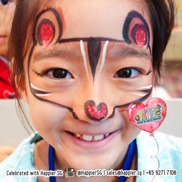 Our face painters are hired on an hourly basis with minimum 1 hour booking per party. The average price for a face painter is 100 to 150 sgd per hour, with the final cost depending on the booking duration, the complexity of the designs requested, and the number of attendees. On the spot extensions are subject to face painter availability. Our weekend schedule tends to be very tight due to birthday parties so do consult us on the right duration to book if you are not sure.