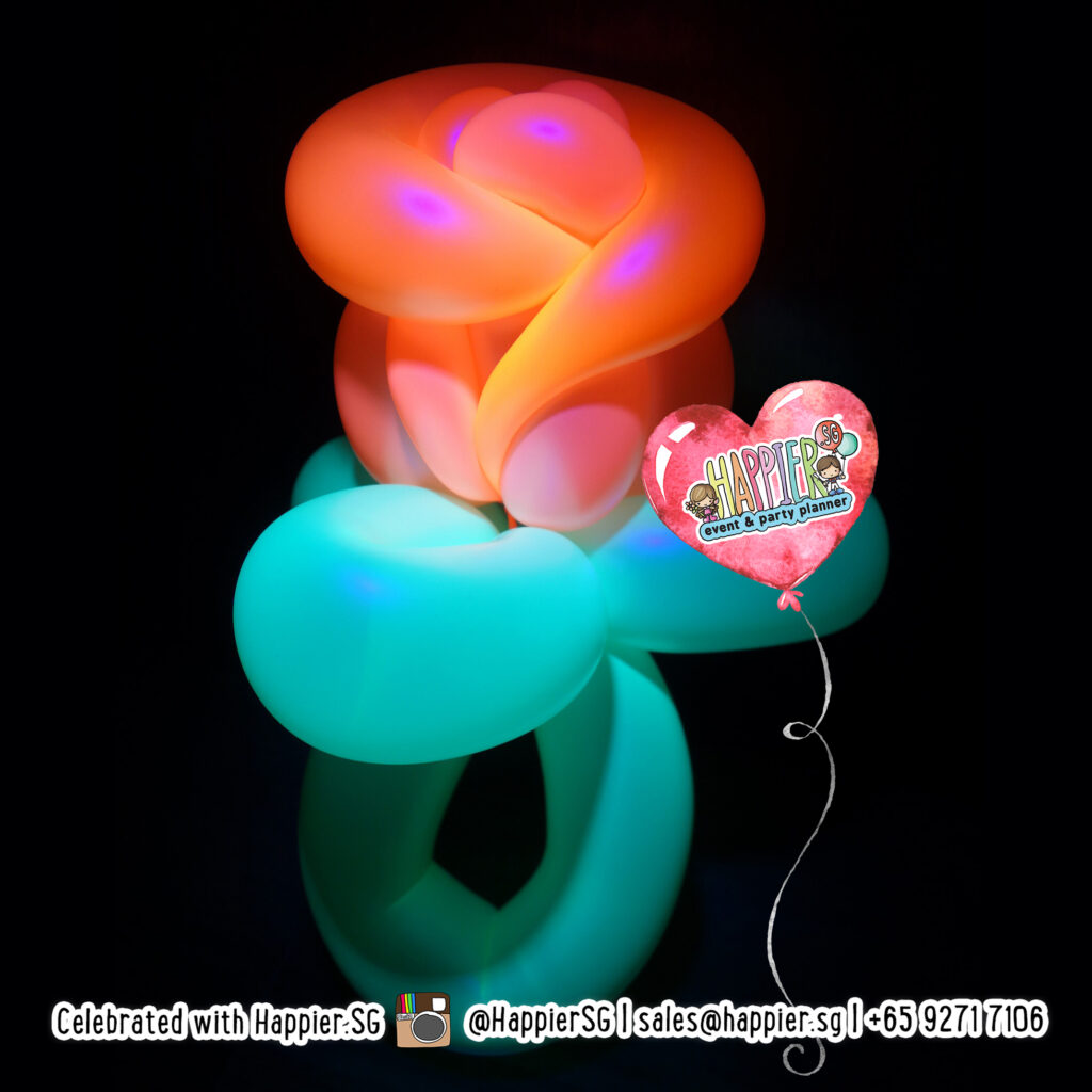 Good news because your balloon sculptures are still visible in vibrant colors under daylight! Do note that you will need to ensure your dark environment is UV friendly if you want the balloons to glow. We also provide rental of UV lights and lighting technician to help you with this. 🙂